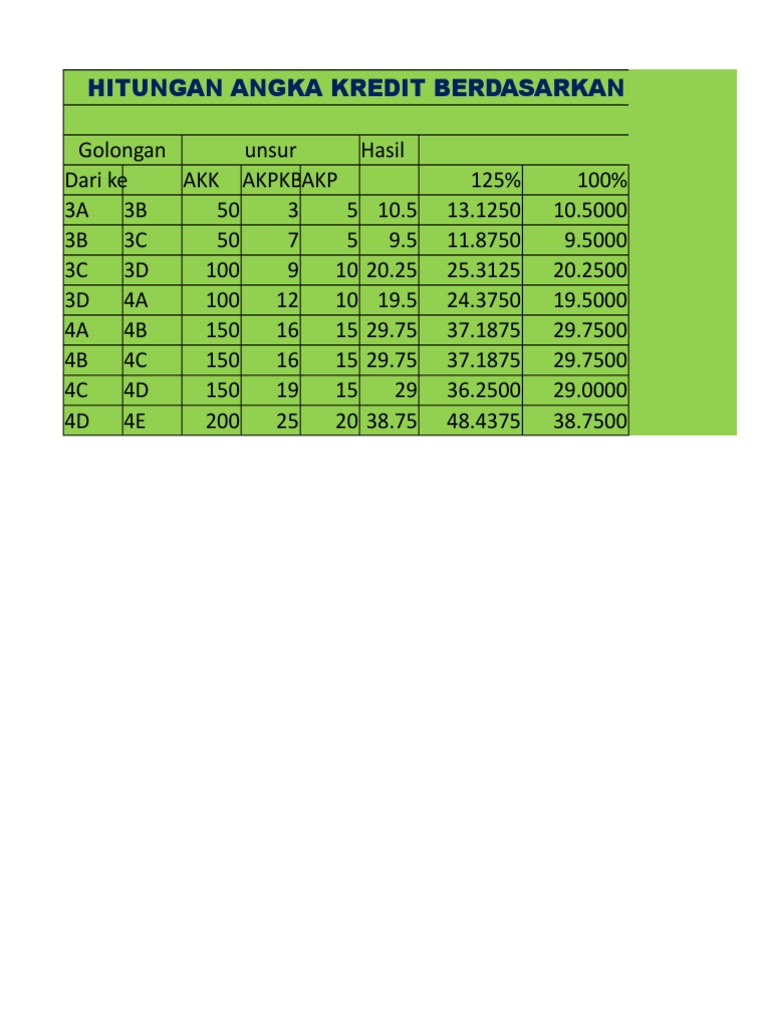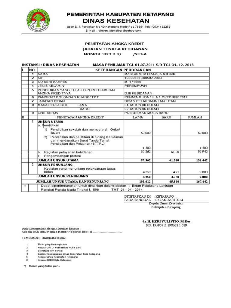 Jul 31, 2018 · Software atau Aplikasi Angka Kredit Point Bidan Kenaikan Pangkat. Angka Kredit Point merupakan penilaian pekerjaan bagi tenaga fungsional/ Jabatan fungsional di lingkungan pemerintahan atau yang umum di sebut PNS. Butir pekerjaan dituangkan dalam formulir harian, bulanan hingga semesteran dan tahunan.