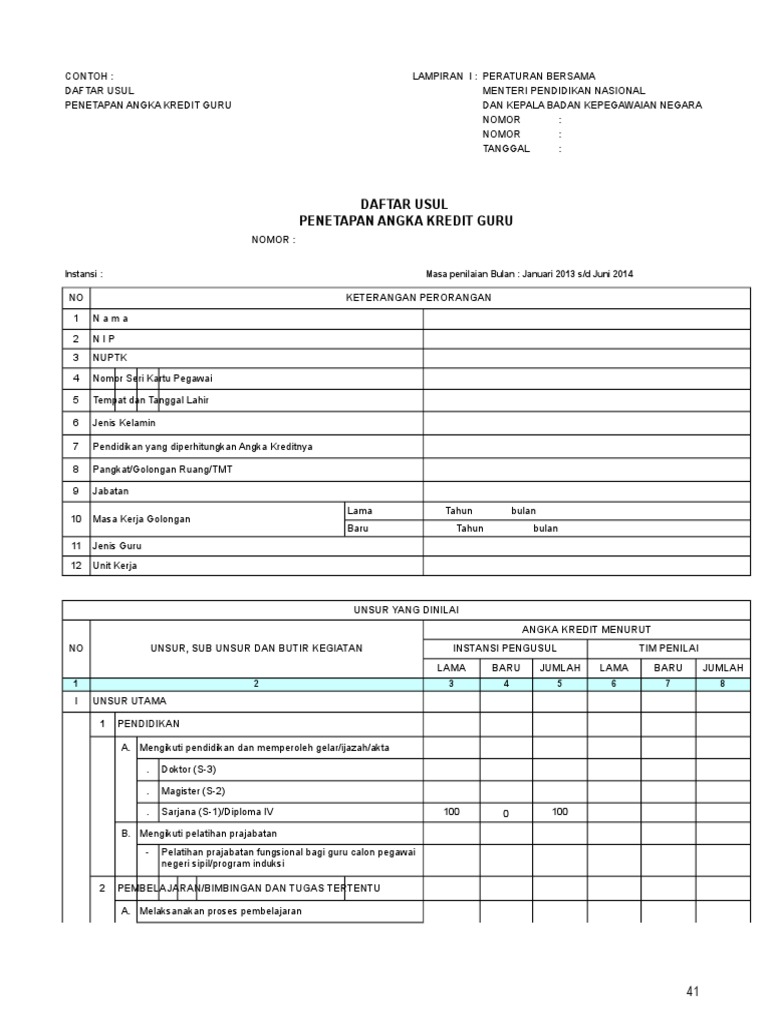 4. Contoh Pengisian DUPAK Guru. 4.1. Mengisi Angka Kredit Instansi Pengusul pada kolom "Lama" berdasarkan dokumen PAK. 4.2. Mengisi Angka Kredit Instansi Pengusul pada kolom "Baru" berdasarkan dokumen penilaian SKP. 1. Periode Pengajuan DUPAK. Daftar usulan DUPAK untuk jabatan fungsional guru yang telah memenuhi syarat kenaikan pangkat ...