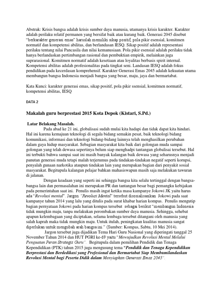 21 Makalah Generasi Emas 2045 - Info Uang Online Generasi emas 2045 merupakan harapan masa depan bangsa indonesia. Indonesia emas 2045 telah menjadi impian besar untuk membentuk indonesia yang mampu bersaing dengan bangsa lain serta dapat menyelesaikan masalah masalah yang mendasar di tanah air kita seperti isu korupsi dan kemiskinan. kumpulanjurnal.download › p › download-filekumpulanjurnal.download kumpulanjurnal.download