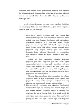 ANALISIS LAPORAN KEUANGAN - Review Buku Analisis Laporan Keuangan Financial Statement Analysis Buku 1 Edisi 10Pengarang : K.R. Subramanyam John J. WildPenerbit : Salemba Empat DAFTAR ISI 1 Tinjauan Analisis Laporan Keuangan 2 Analisis Bisnis 4 ... 4 Analisis Aktivitas Investasi 270 Pengenalan Aset Lancar 272 Kas dan Setara Kas 273 Piutang 274 Beban Dibayar di Muka 279 Persediaan 279