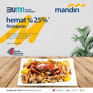Promo Restoran Kartu Mandiri Diskon Hingga 30% - TravelsPromo Promo diskon diperoleh dengan menukarkan Livin Poin. Minimum transaksi Rp250.000. Metode pembayaran dengan Mandiri Kartu Kredit dan Debit. Berlaku di Pepper Lunch Beachwalk Shoping Centre, Jl. Pantai Kuta, Kuta, Badung, Bali dan Trans Studio Mall Bali, Jl. Imam Bonjol, Pemecutan Kelod, Denpasar.