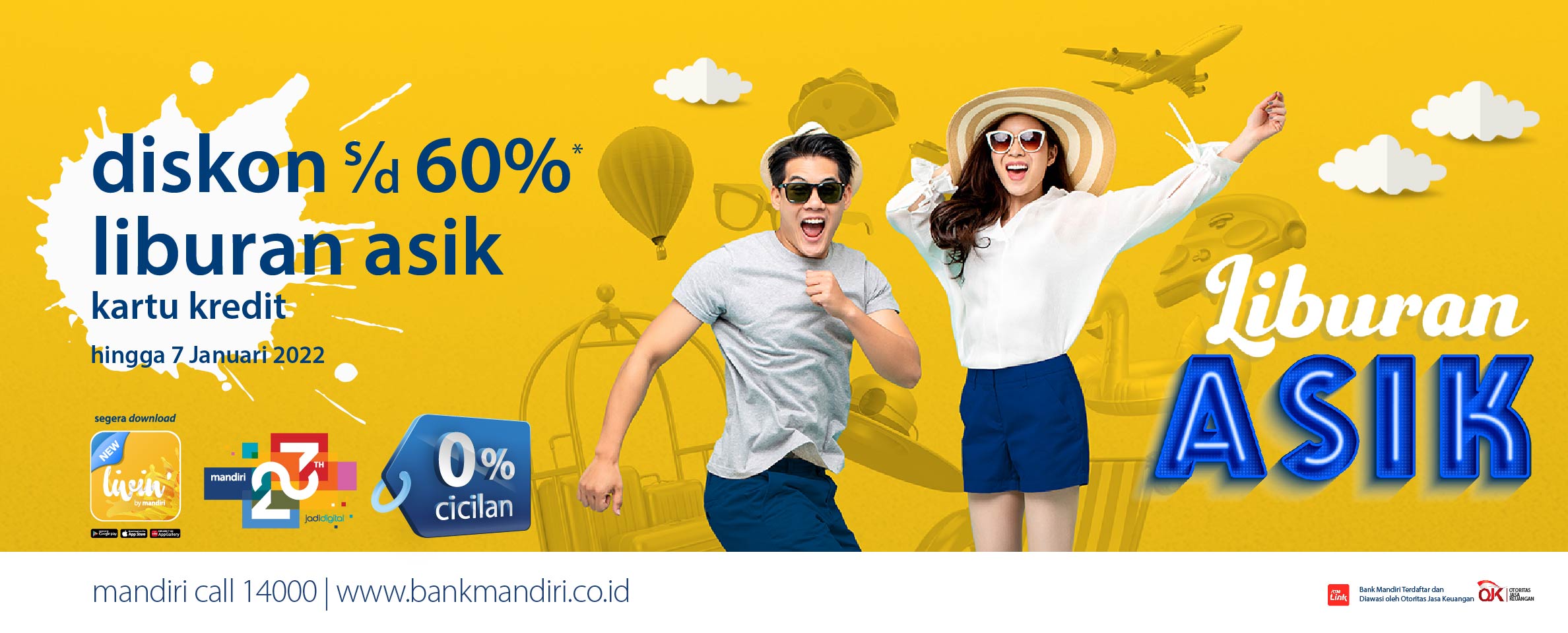 Promo Mandiri Kartu Kredit - Traveloka Ada banyak kesempatan berhemat menantimu dengan Mandiri Payday Deals.Dari Rental Mobil sampai makan-makan, pengguna Mandiri Kartu Kredit bisa mendapatkan diskon hingga Rp500rb tiap bulan.Inilah saatnya memberi hadiah untuk dirimu yang sudah bekerja keras bulan ini.